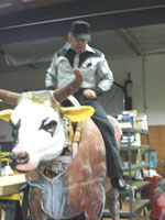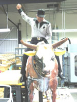 Check out the slide show of the creation of bullvicious. Watch the early development of the bulls movements on video. It was a long and thought out process to create a bull that not only looks like a bull but moves like one.
